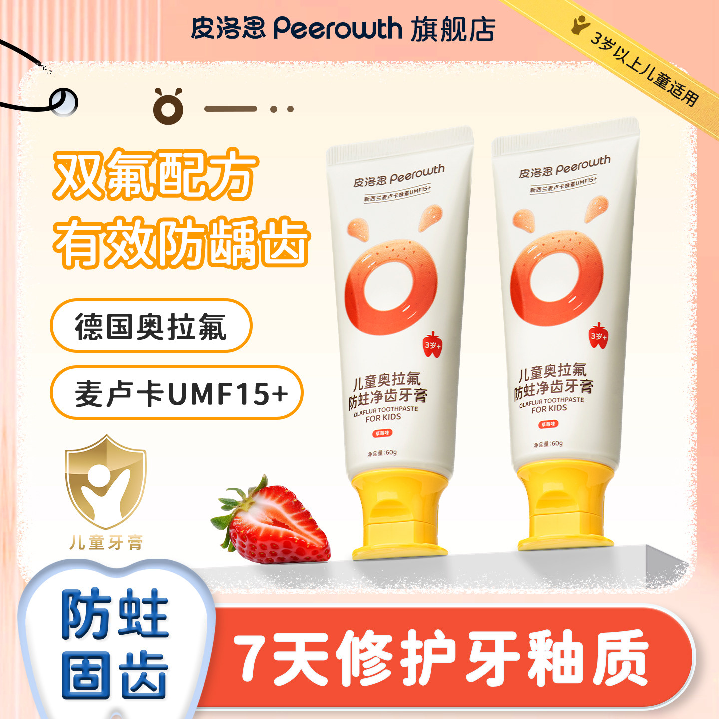 皮洛思儿童牙膏进口奥拉氟防蛀净齿双氟防龋1到3岁及3岁以上儿童