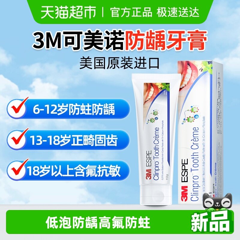clinpro可美诺含氟儿童牙膏进口香草薄荷低泡防龋正畸固齿抗敏