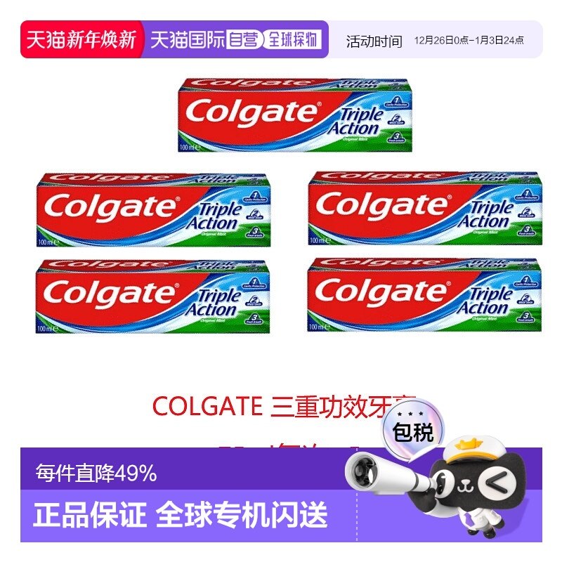 欧洲直邮英国药房高露洁三重功效牙膏进口防蛀牙清新口气*5正品
