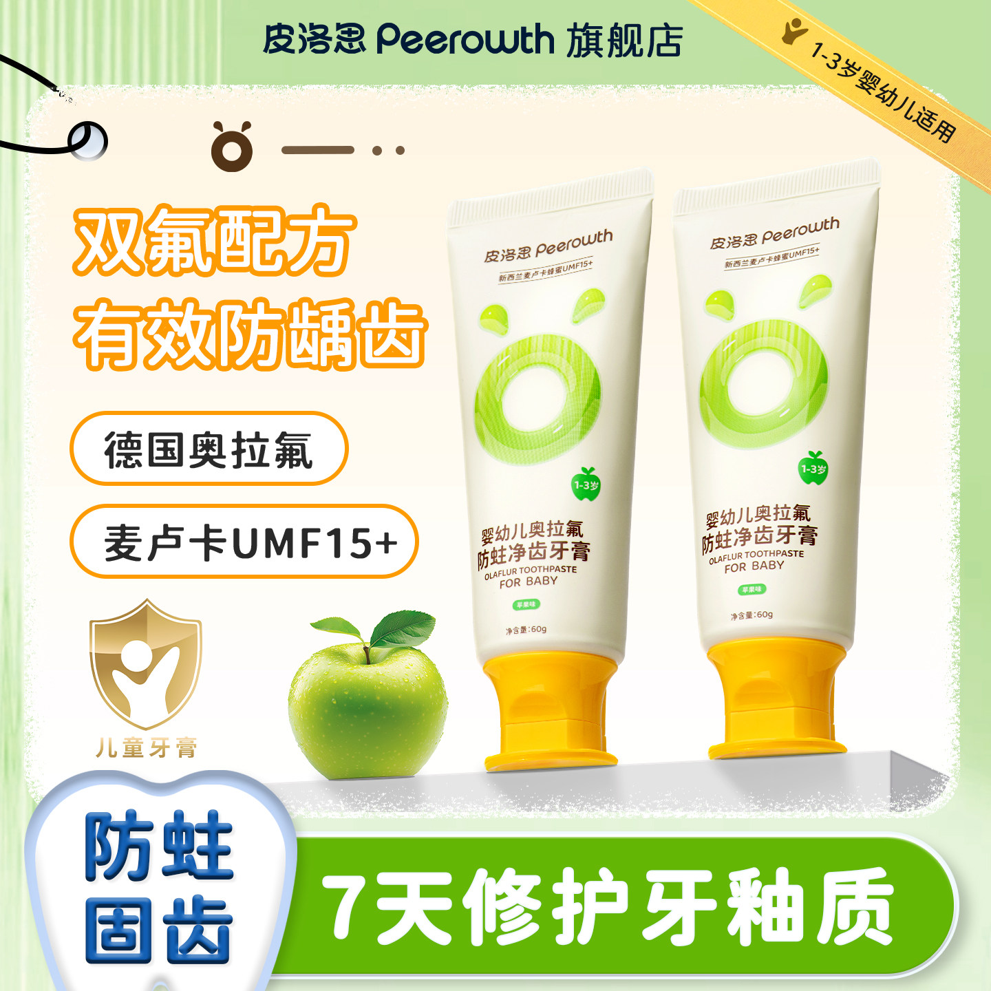 皮洛思儿童牙膏进口奥拉氟配方防蛀净齿牙齿再矿化【1-3岁宝宝】