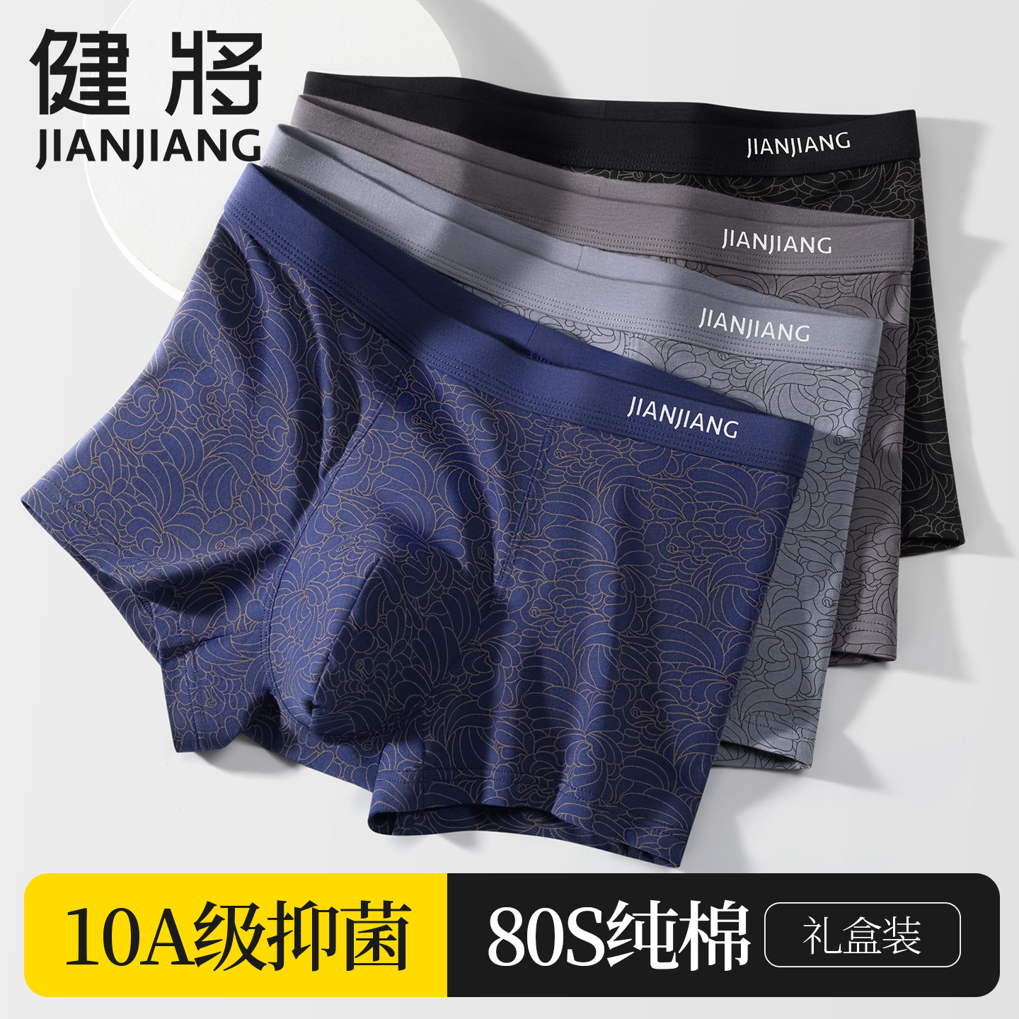 健将男士名牌内裤正品高档纯棉男生2026新款抗菌四角裤衩平角短裤