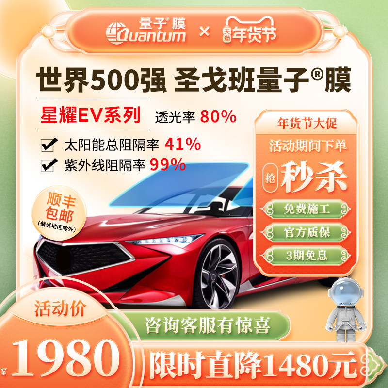 量子膜星耀系列汽车玻璃膜防晒隔热太阳膜车窗隐私遮阳贴膜包安装