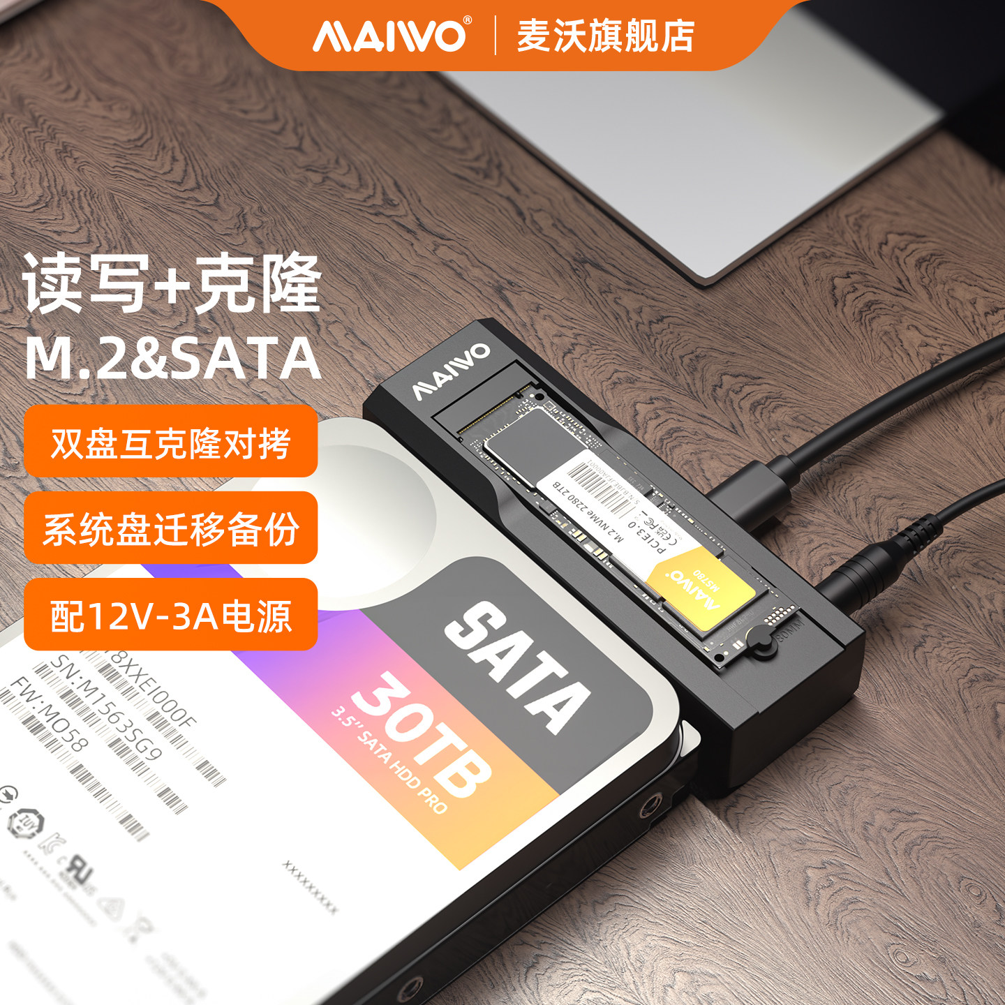 麦沃2.5/3.5/m2NVMe固态SATA硬盘盒座ssd读取转换器克隆拷贝转接