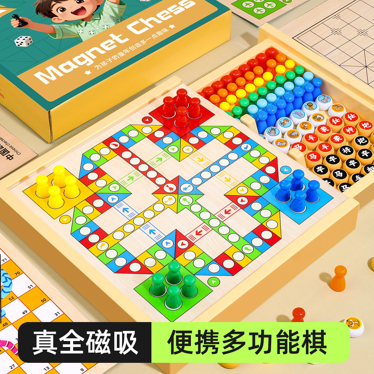 磁吸多功能棋盘五子棋飞行棋跳棋象棋儿童棋类益智玩具多合一套装