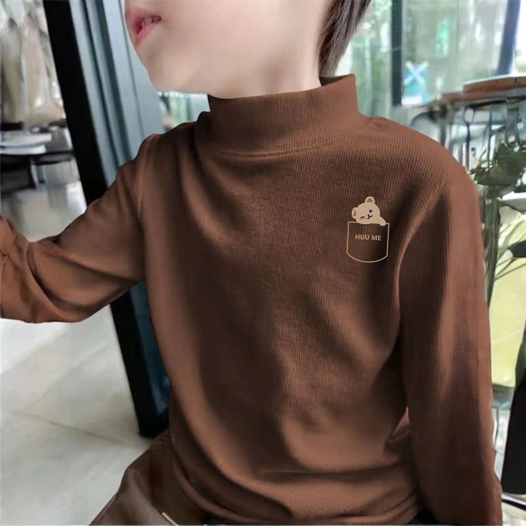 儿童德绒磨毛半高领打底衫秋冬装长袖T恤中大男童装内搭保暖上衣