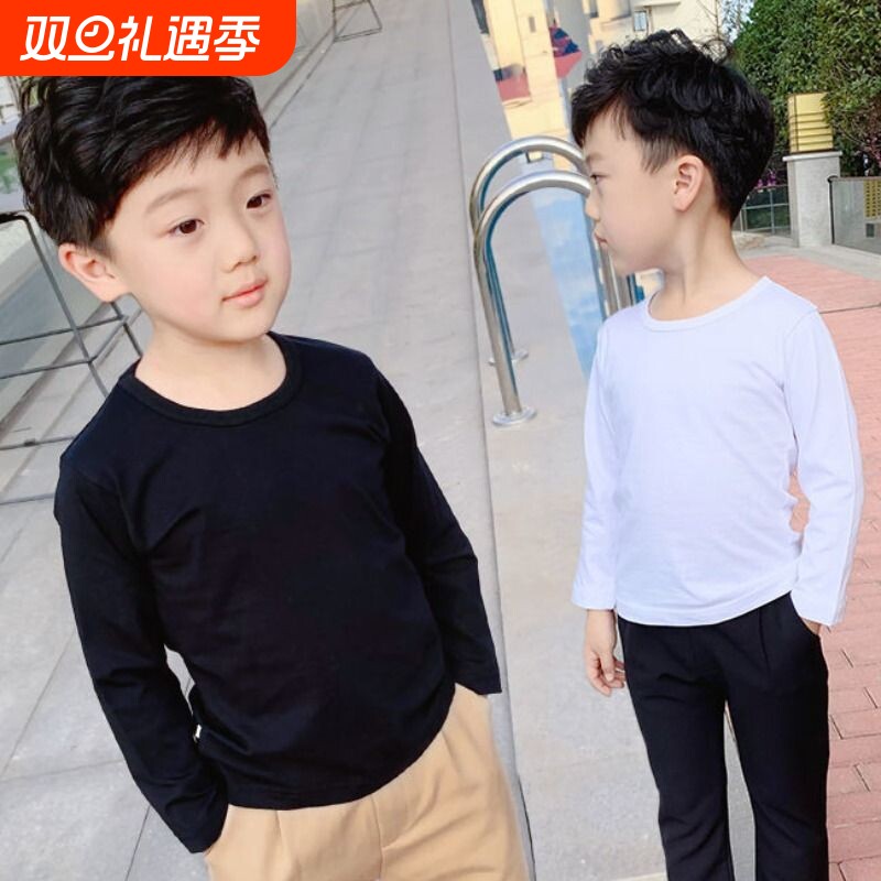 儿童长袖T恤中大男童装新款小童白色纯黑色圆领长袖t恤打底衫全棉