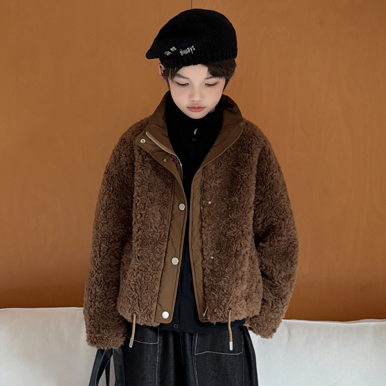 冬装新款中大男童装羊毛皮草外套儿童皮毛一体潮童大衣宽松气质帅