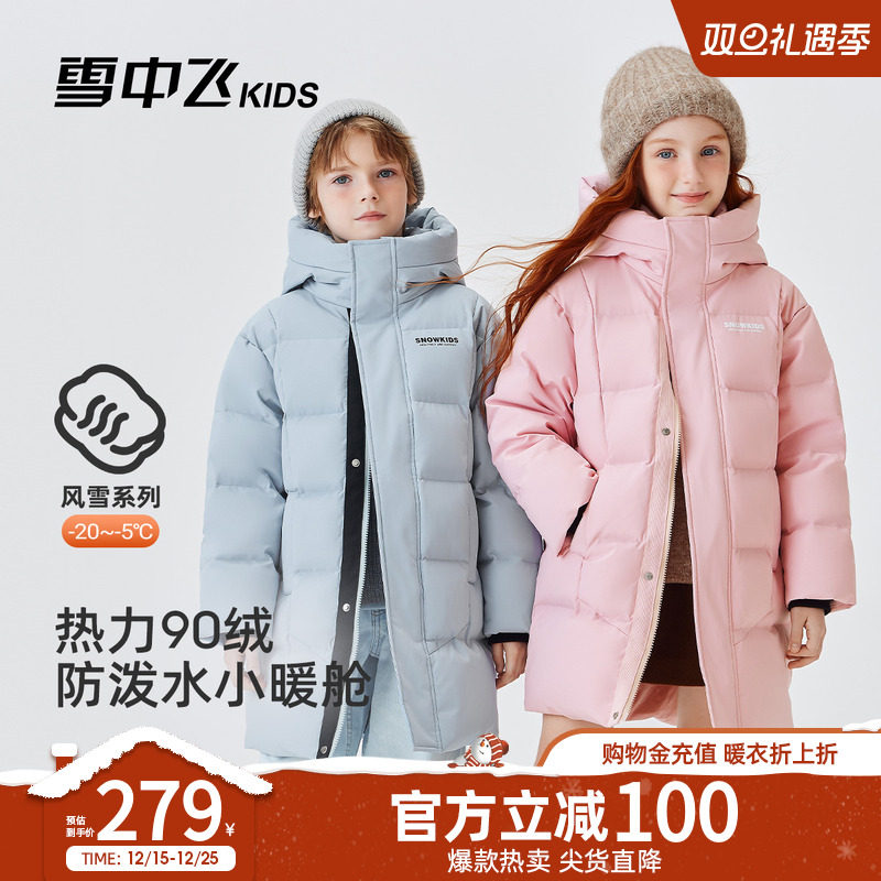 雪中飞kids童装儿童羽绒服男童冬季新款中大女童加厚中长款外套