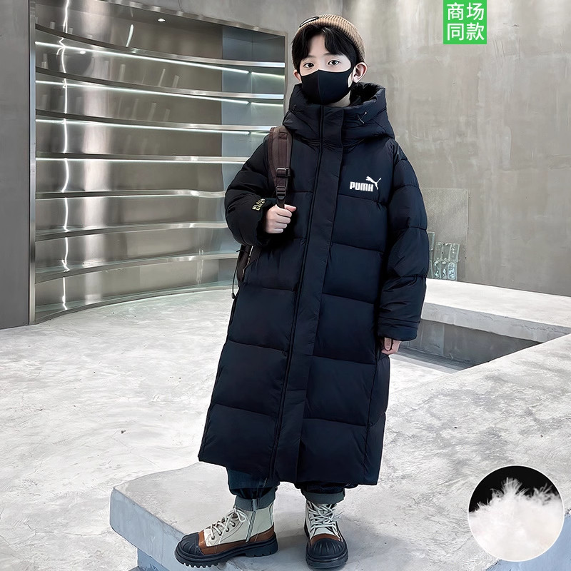 官网奥莱中大男童装白鸭绒羽绒服2025冬季中长款过膝加厚三防外套
