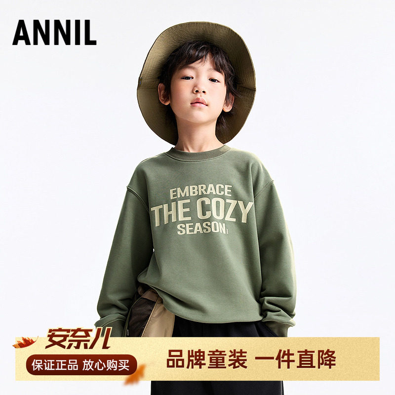 安奈儿中大男童装圆领长袖卫衣2025秋季新款休闲落肩上衣潮酷百搭