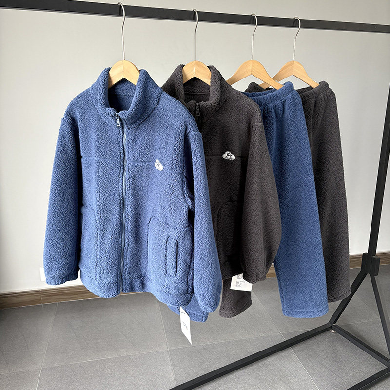 一等童品140-190中大男童装秋冬仿羊羔绒家居服套装加厚保暖睡衣