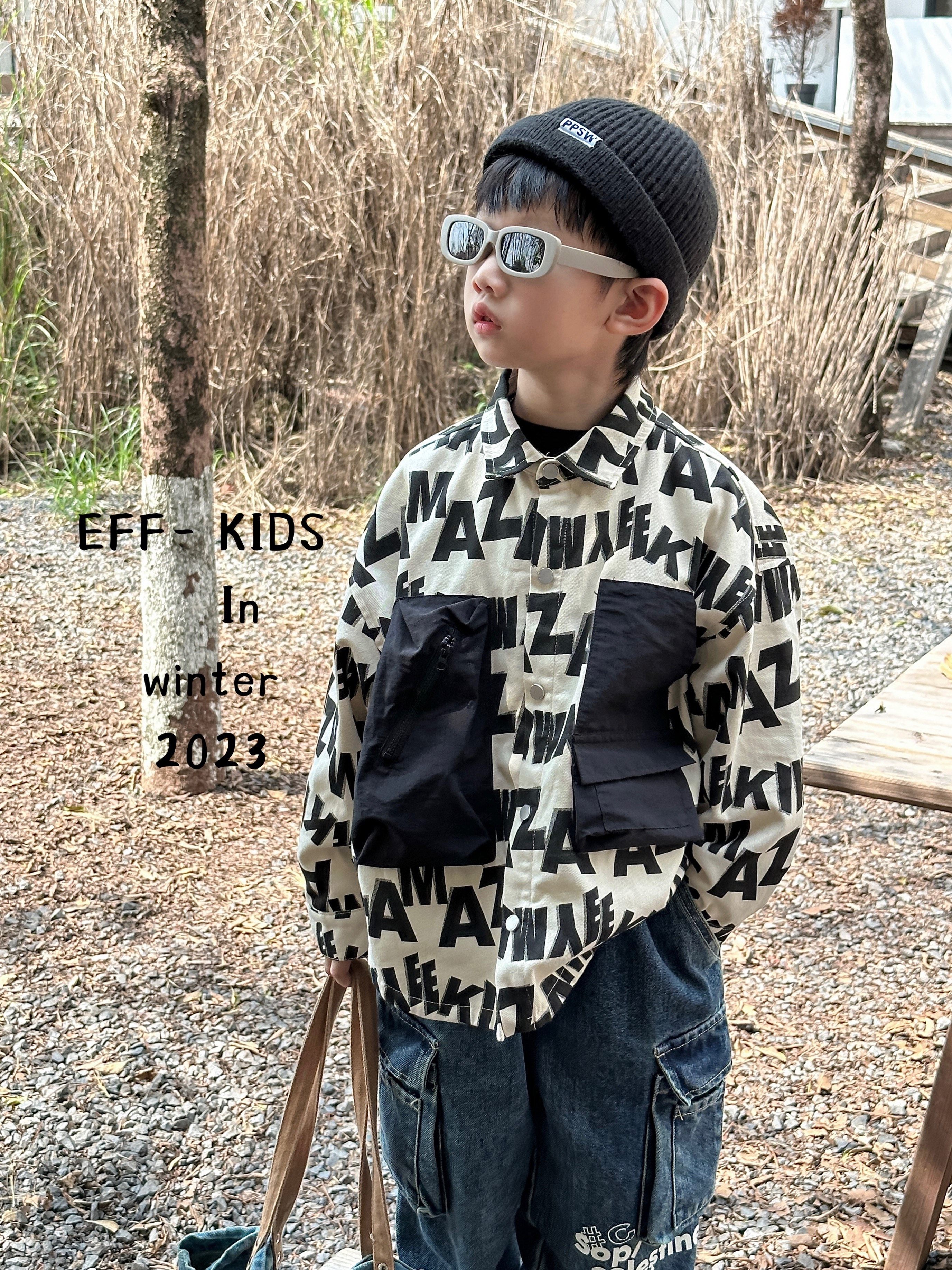 尔菲梵EC潮牌EFF小中大男童装冬季款加绒加厚单排扣英文衬衫外套