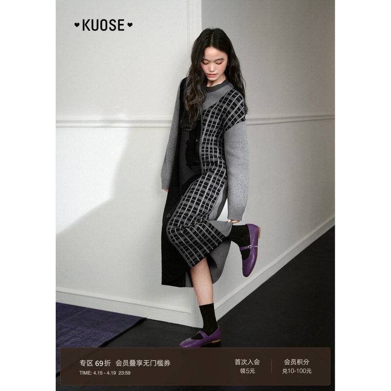 - 针织拼接连衣裙秋