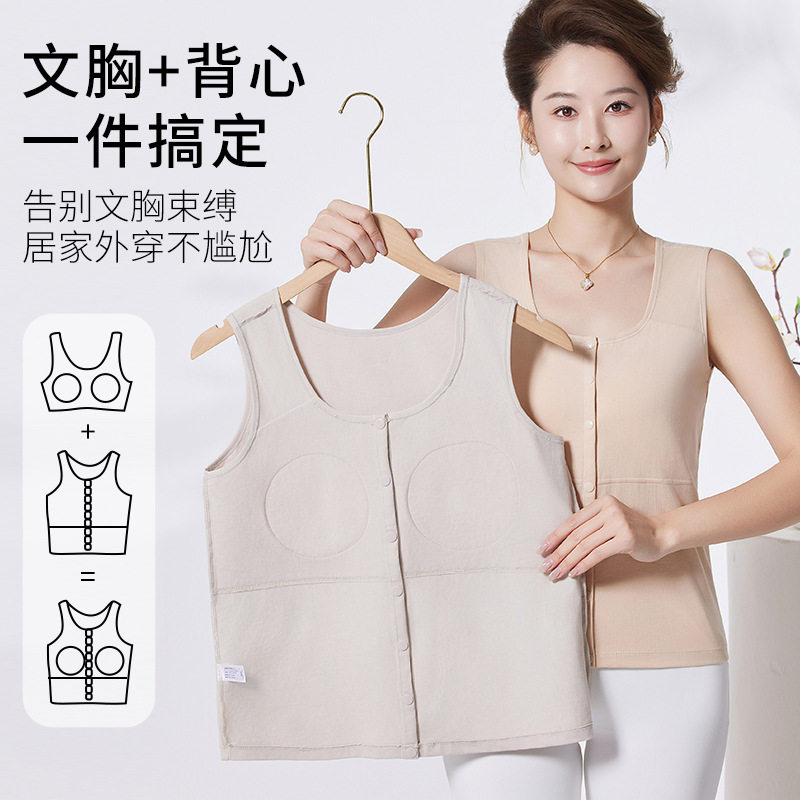 长绒棉背心妈妈前开扣带胸垫中老年内搭一体杯垫秋冬打底开衫上衣