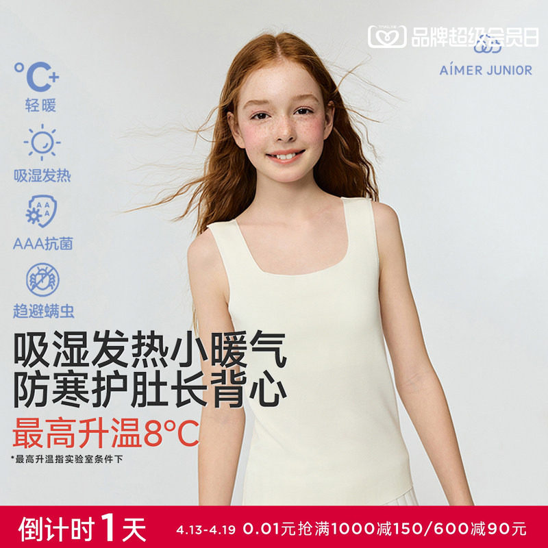 爱慕少女小暖气吸湿发热抗菌防螨一二阶段长背心秋冬打底带杯背心