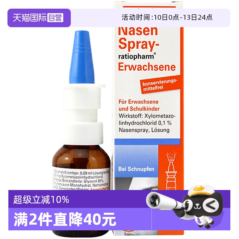 【自营】ratiopharm成人过敏性鼻炎喷雾鼻通滴鼻剂15ml鼻塞喷剂