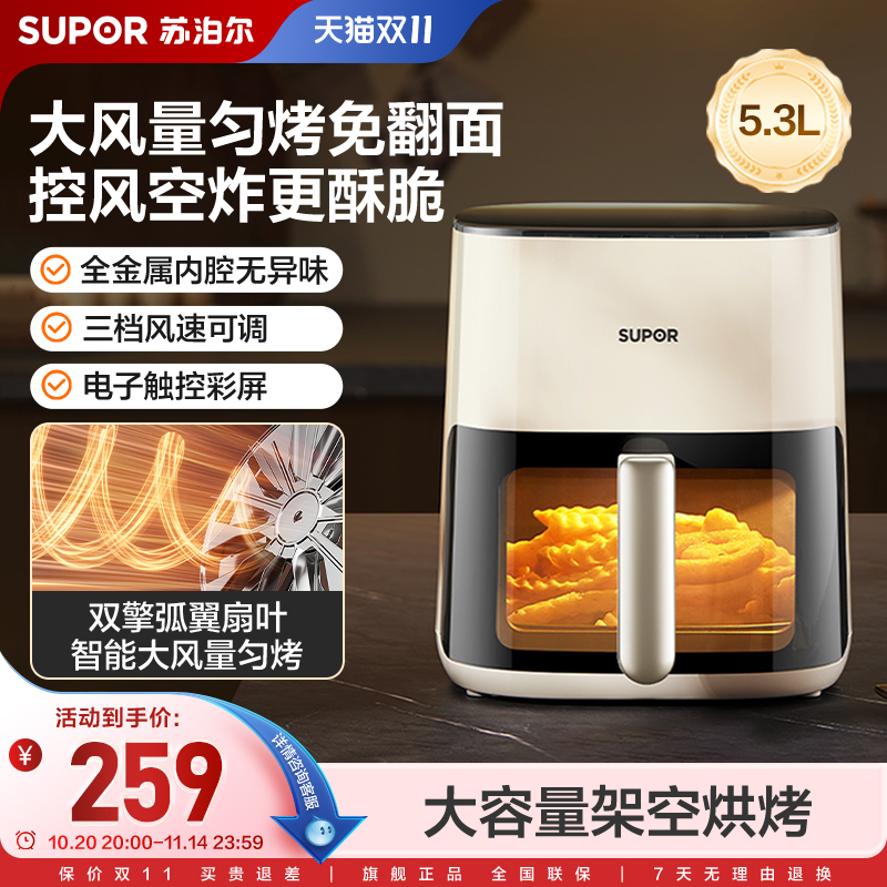 苏泊尔空气炸锅免翻面自动多功能电炸锅5L大容量家用2023新款