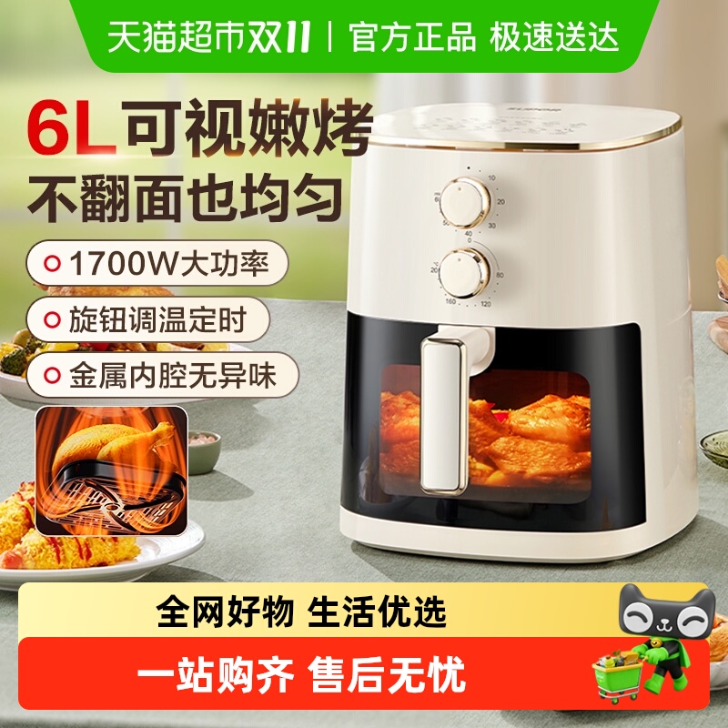 苏泊尔远红外空气炸锅可视智能多功能电炸锅6L大容量家用免翻面