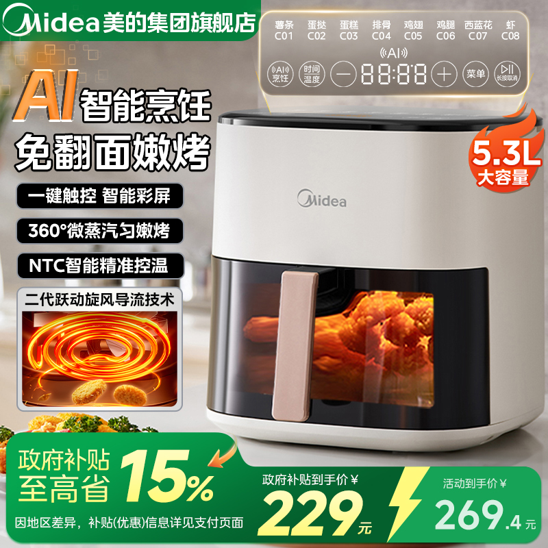 美的空气炸锅家用2025新款智能一体多功能电炸锅烹饪机官方炸锅