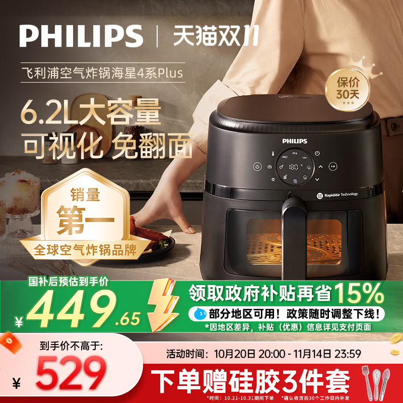 飞利浦空气炸锅4L家用新款大容量可视免翻面电炸锅多功能烤箱官方