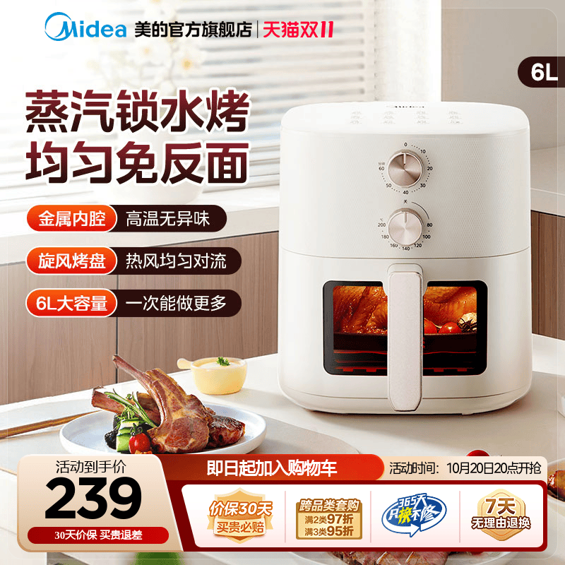 美的空气炸锅政府补贴家用大容量可视电炸锅新款烤箱官方旗舰正品