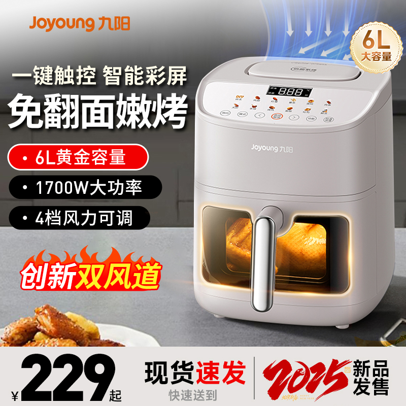 九阳家用新款全自动空气炸锅6L大容量彩屏可视电烤箱电炸锅烹饪机
