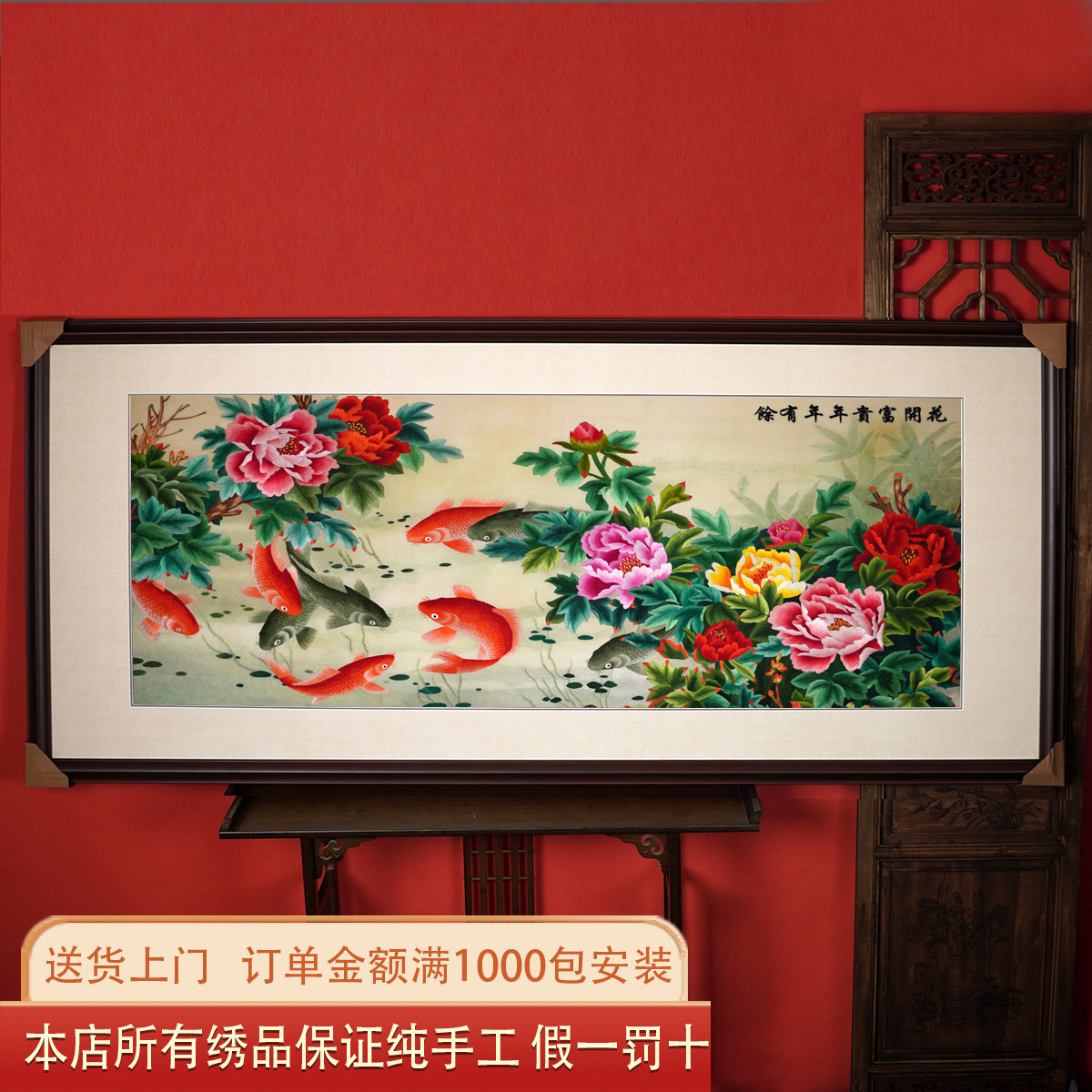 精品纯手工苏州刺绣画苏绣成品挂画客厅装饰画 花开富贵年年有余