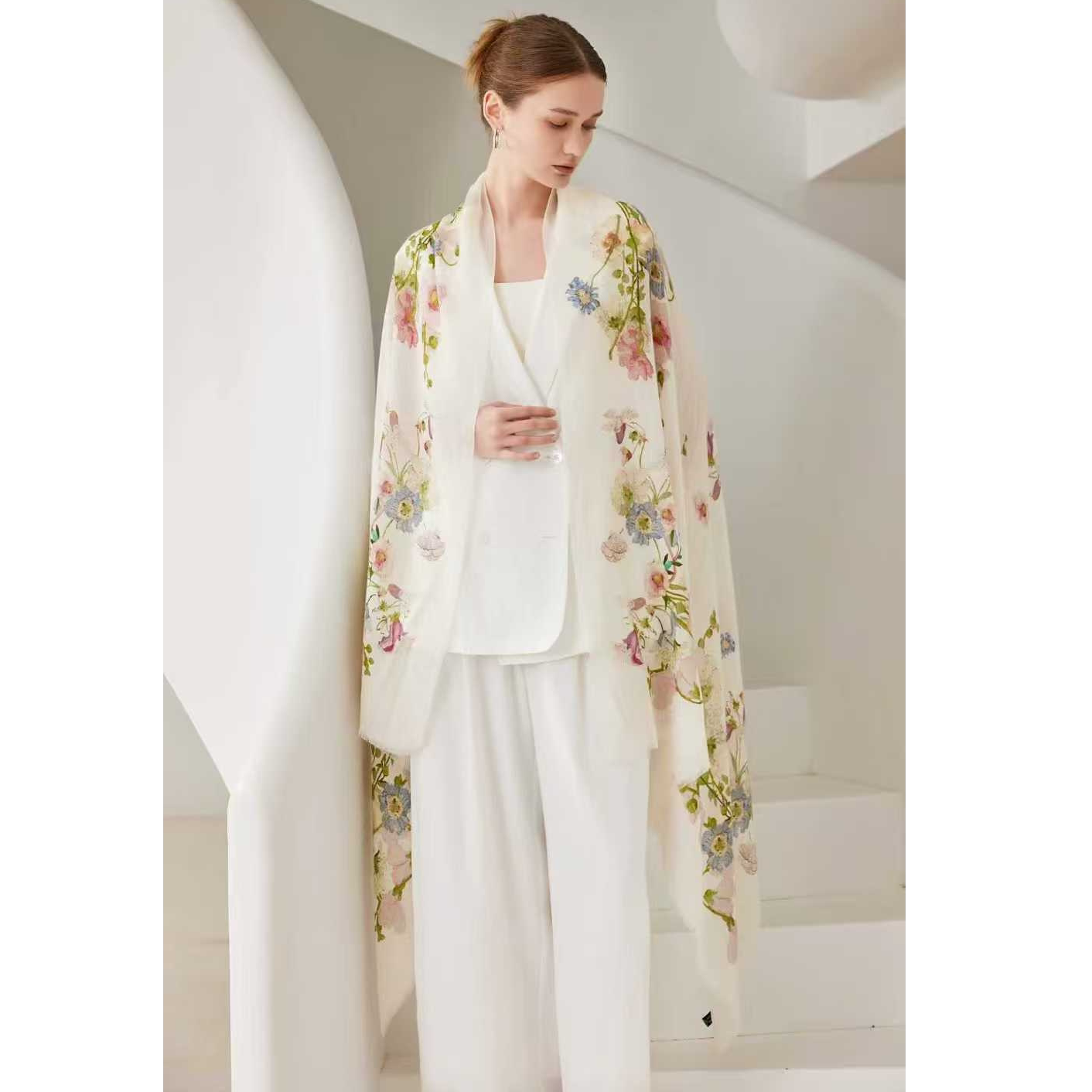 AiurtRuutti意式老钱风歌剧院提花 纯山羊绒春夏披肩外搭防晒围巾