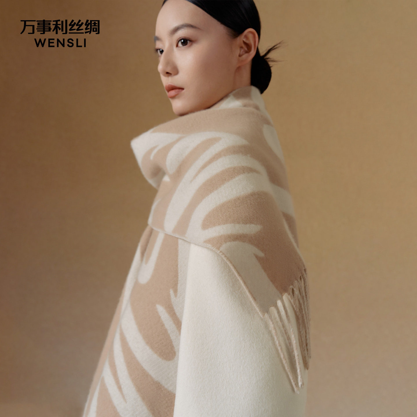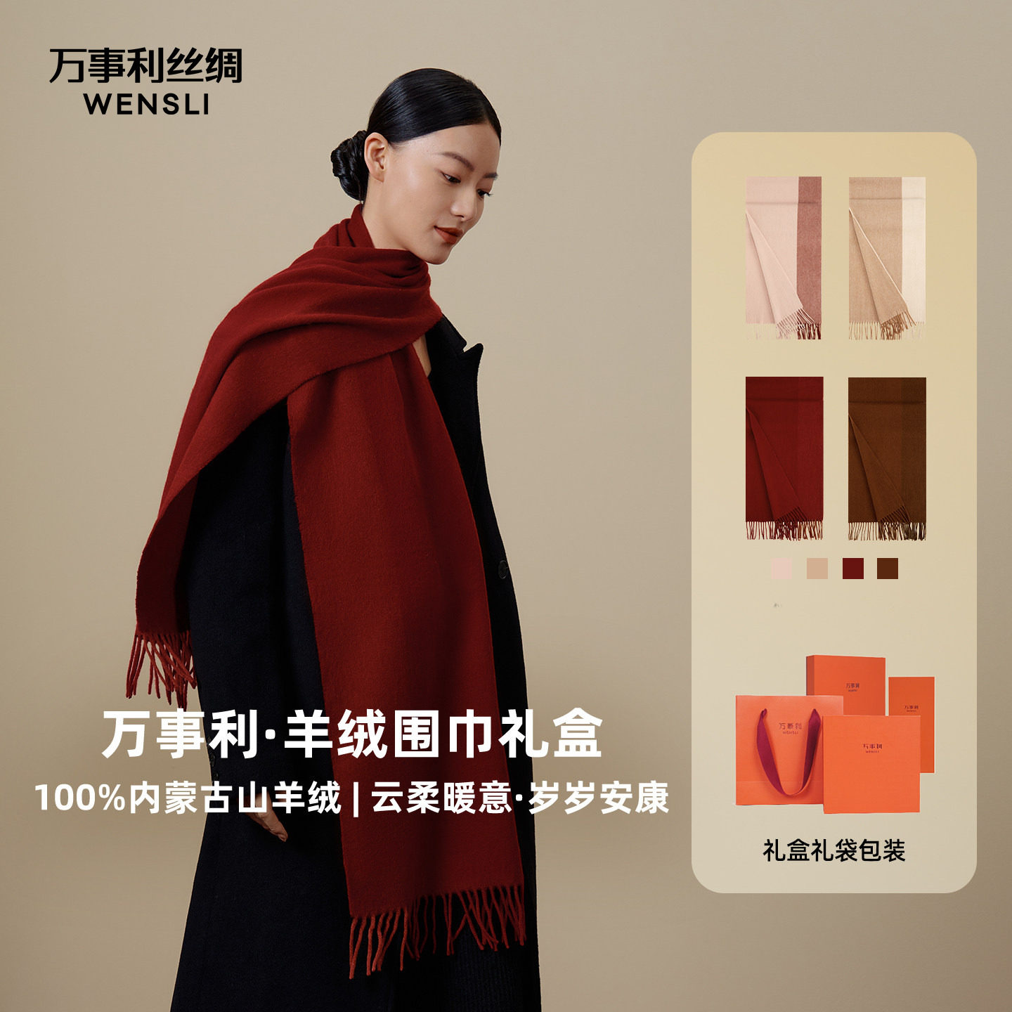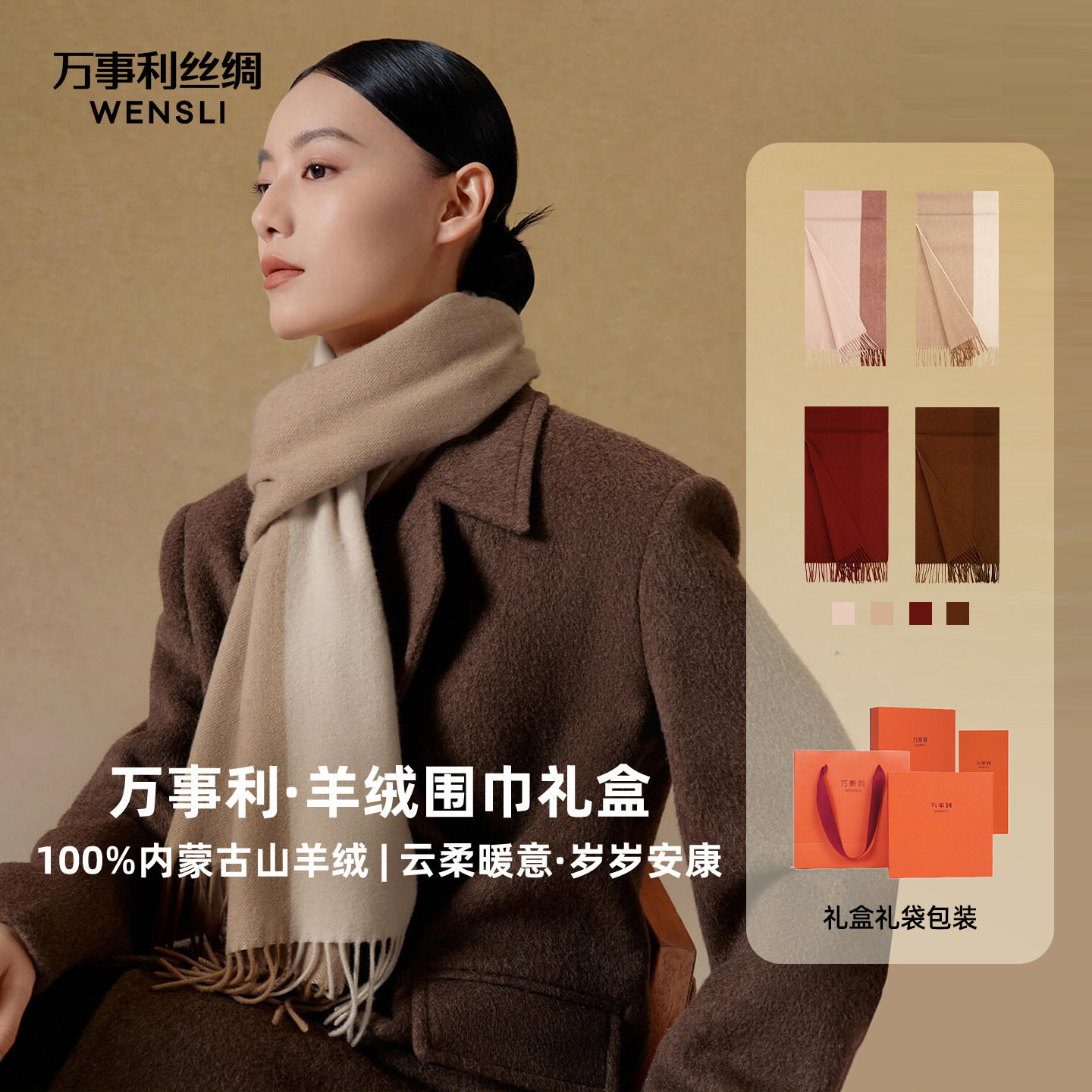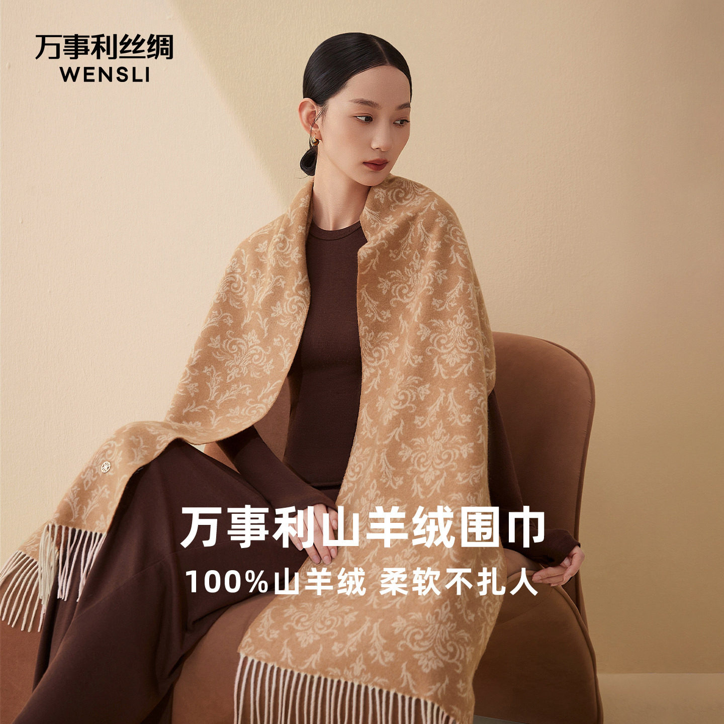 万事利秋冬新款100%山羊绒围巾百搭送礼保暖披肩羊绒围巾-风华锦