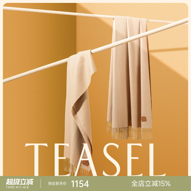 TEASEL「INFINITY ALXA」14.5微米BABY山羊绒保暖纯色围巾披肩
