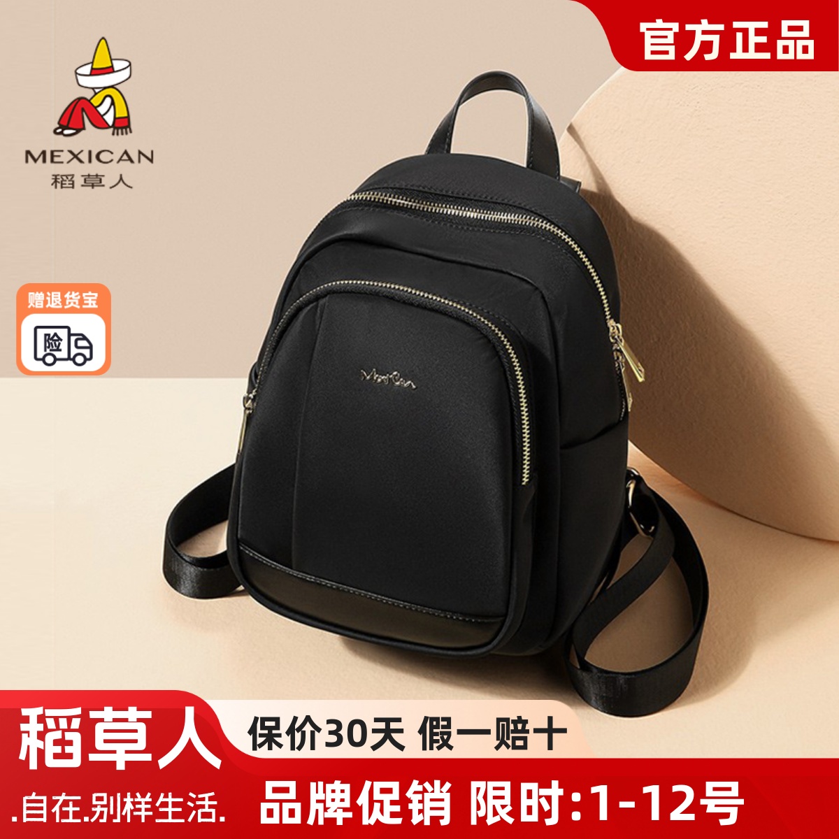 稻草人双肩包女2025新款女包黑色书包休闲帆布电脑旅行包通勤背包