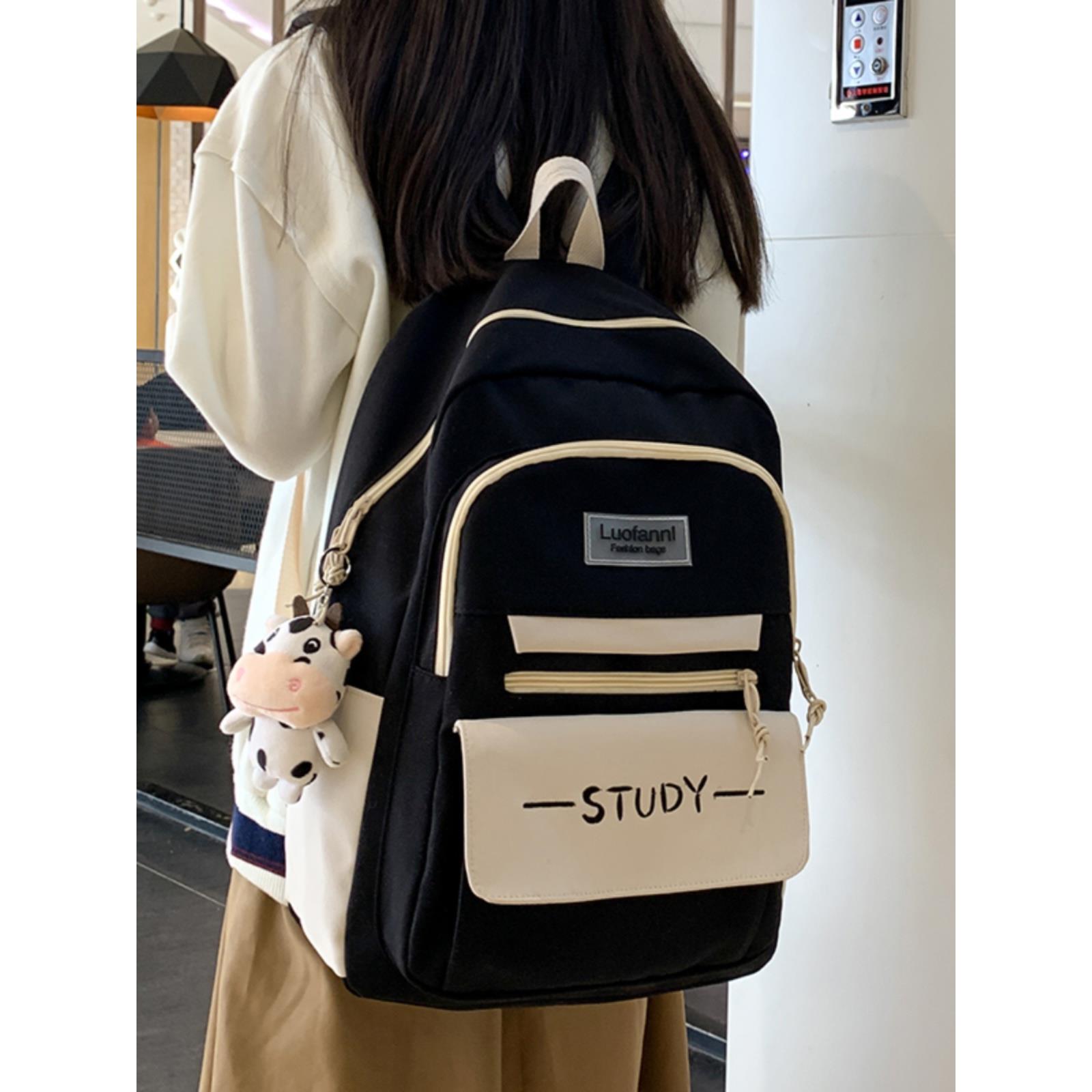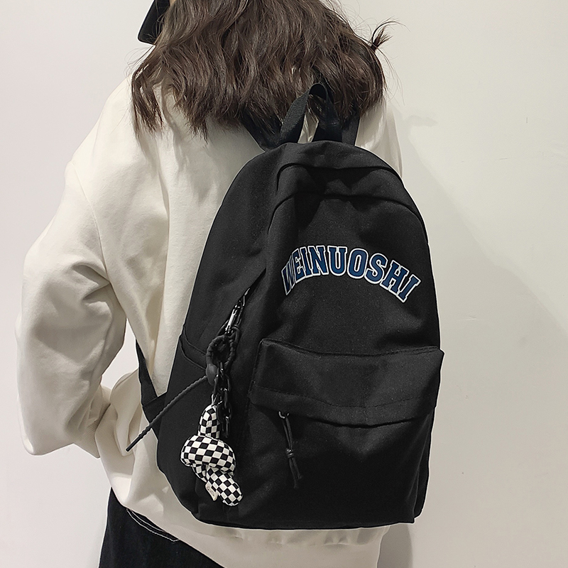 ins风书包女 韩版日系简约黑色帆布高中背包大学生森系百搭双肩包