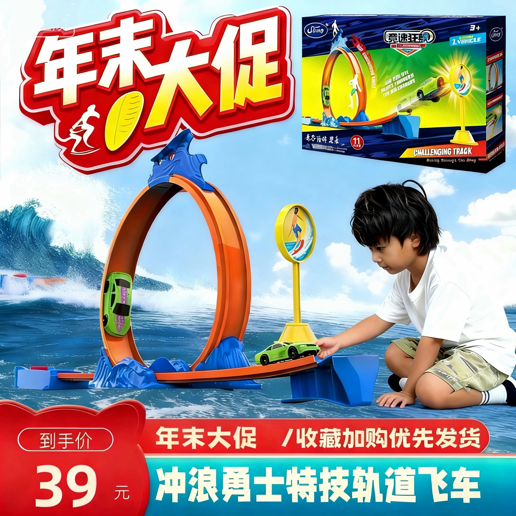 涛乐趣冲浪勇士特技轨道飞车跑车竞速赛车赛道男孩儿童玩具车套装