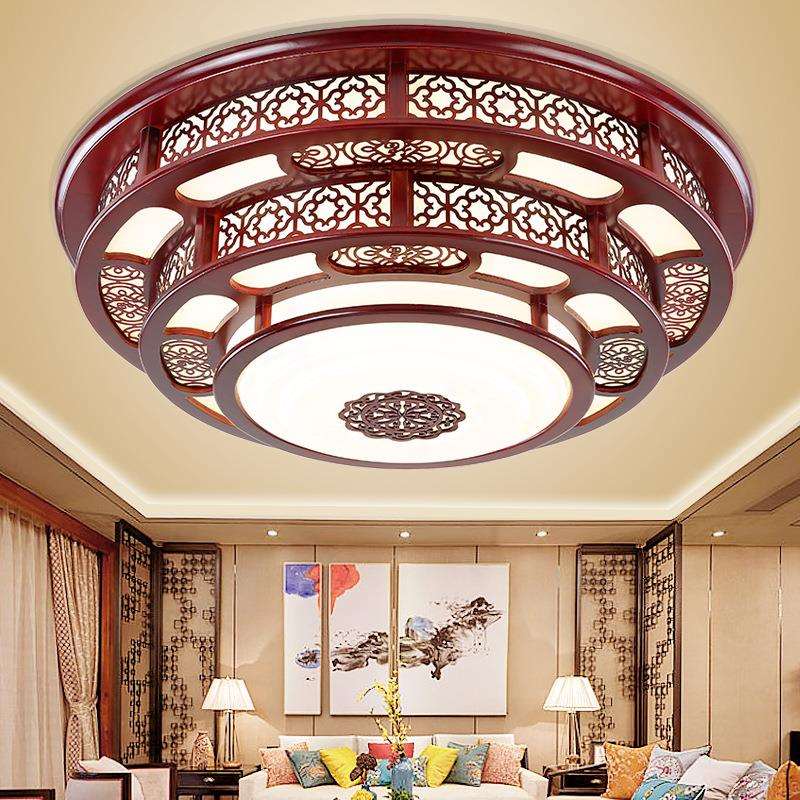 新中式双层客厅圆吸顶灯LED大圆灯卧室书房复式楼茶楼包间房灯具