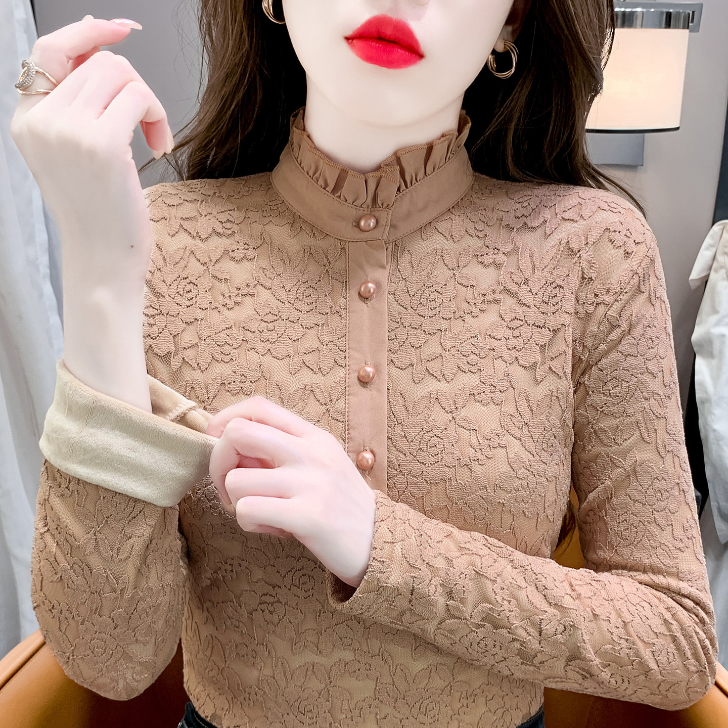 - 加绒加厚蕾丝上衣