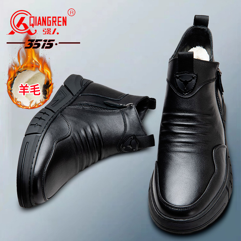 3515强人男鞋冬季男士马丁靴真皮雪地靴羊毛棉鞋皮毛一体高帮皮鞋