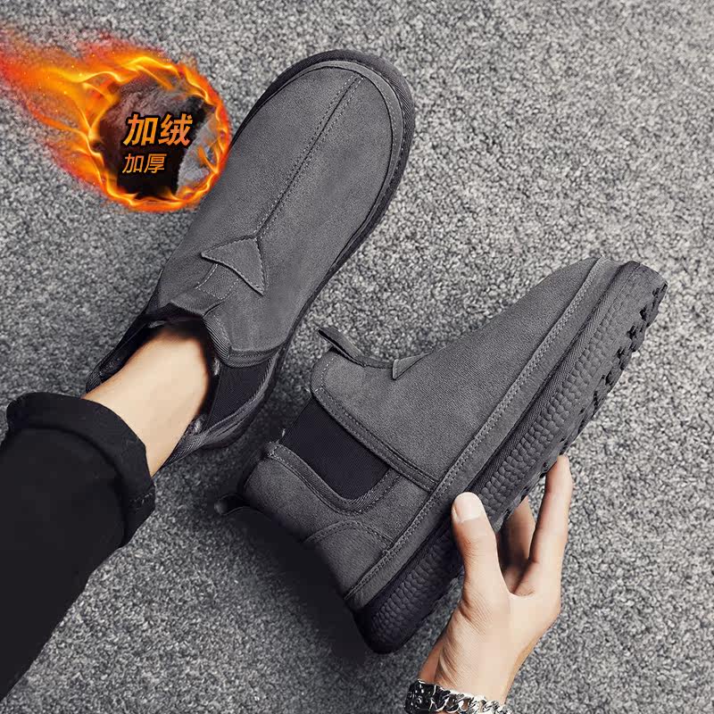 男鞋皮鞋秋季休闲高帮一脚蹬加绒棉鞋冬季鞋子2025新款男士马丁靴