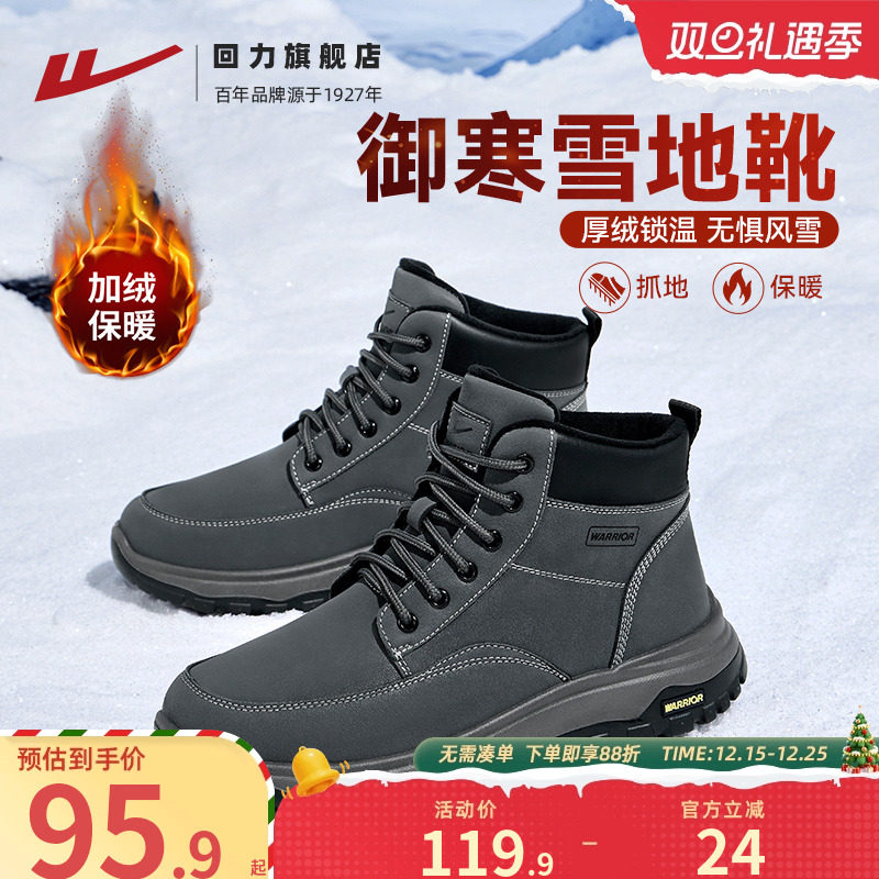 回力官方旗舰店马丁靴男款2025新款雪地靴冬季加绒加厚保暖棉鞋男