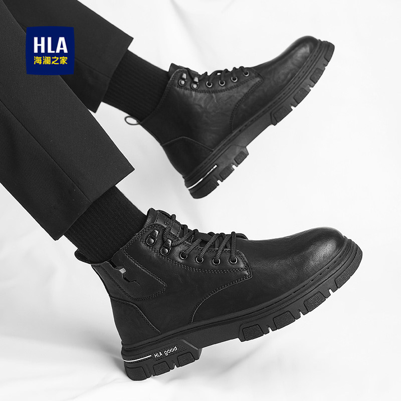 海澜之家男士马丁靴男款2025新款春冬季英伦高帮机车厚底工装靴子