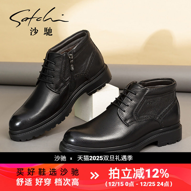 沙驰冬季男鞋男靴切尔西男士马丁靴男款加绒加厚保暖皮鞋牛皮棉鞋