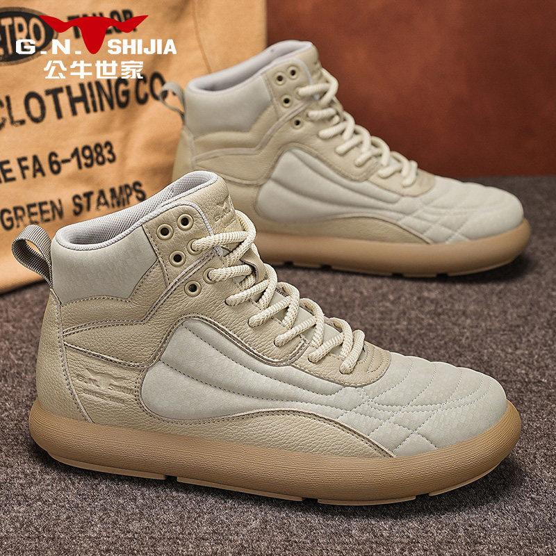公牛世家男鞋冬季新款加绒大棉鞋爆款男士马丁靴增高帮休闲皮板鞋