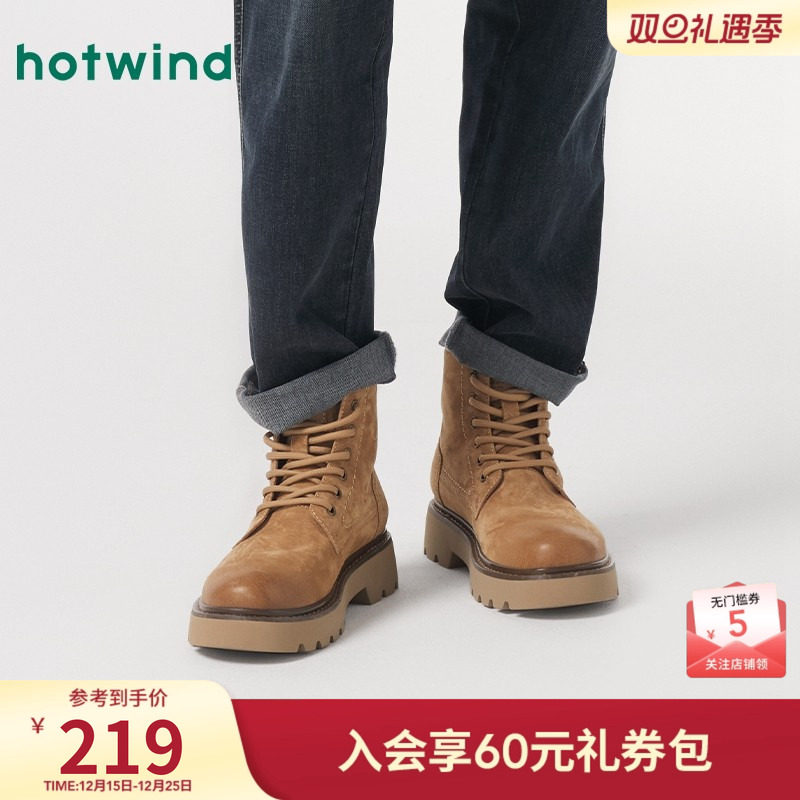 热风男士马丁靴25年冬新款时尚系带休闲靴子英伦风复古男鞋大黄靴