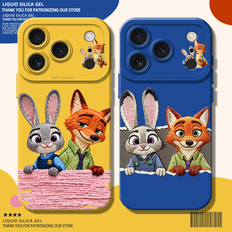 刺绣朱迪适用苹果17手机壳iphone16promax情侣vivox300尼克oppofindx9pro兔子reno8狐狸iqooneo11一加15/ace6