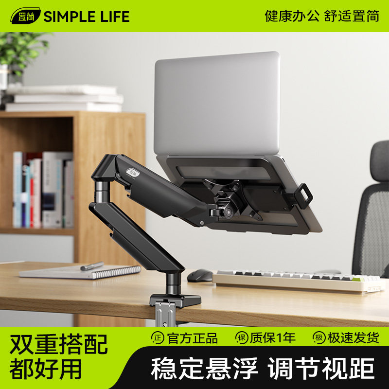 置简笔记本电脑支架托盘机械臂【360°可旋转升降】悬空散热二合一副屏支撑架可调节桌面办公神器增高架托架