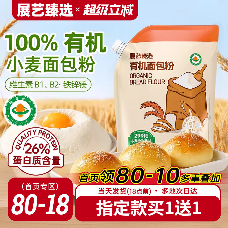 展艺臻选有机面包粉家用0钠小麦粉吐司披萨高筋面粉烘焙专用材料