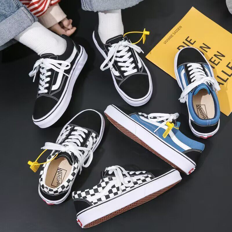 2026新款夏万斯夏季帆布鞋女黑色格子韩版原宿风情侣休闲板鞋
