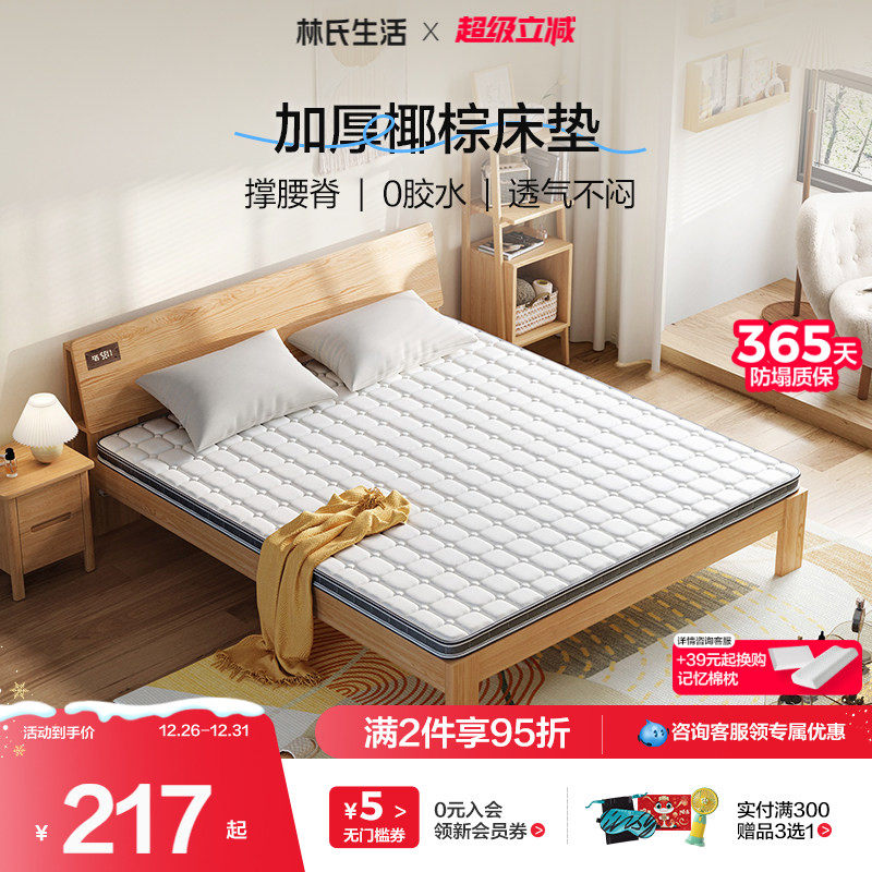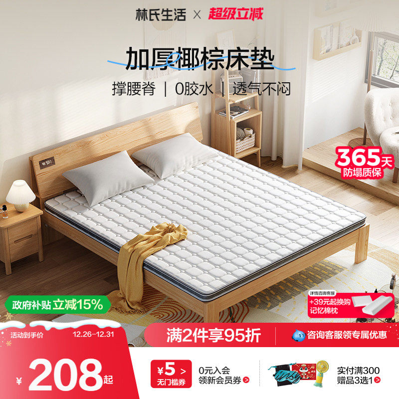 林氏生活家居木业环保椰棕床垫双人棕榈垫1.8m护脊硬垫加厚榻榻米
