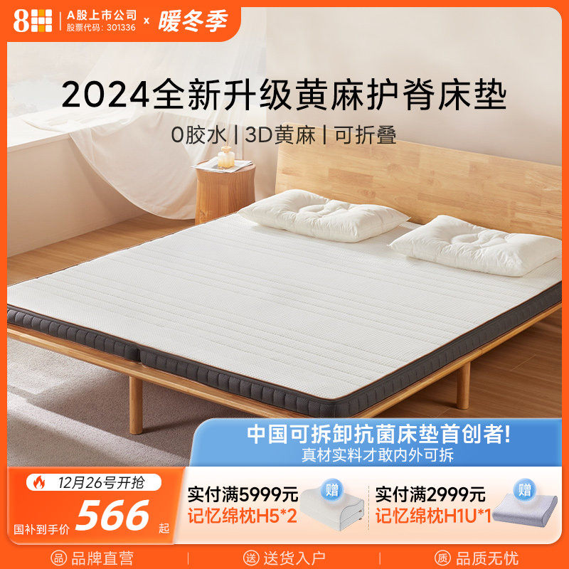 8H天然乳胶床垫1.8m可折叠黄麻护脊偏硬学生宿舍席梦思榻榻米薄垫