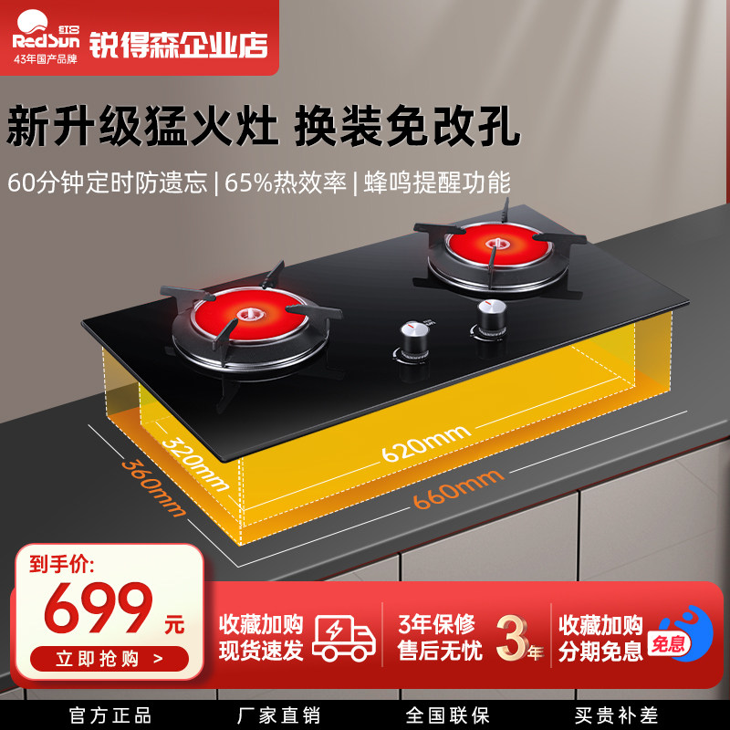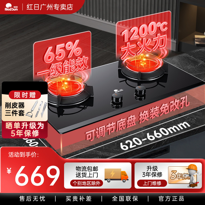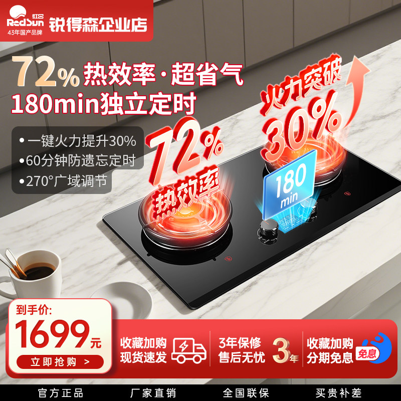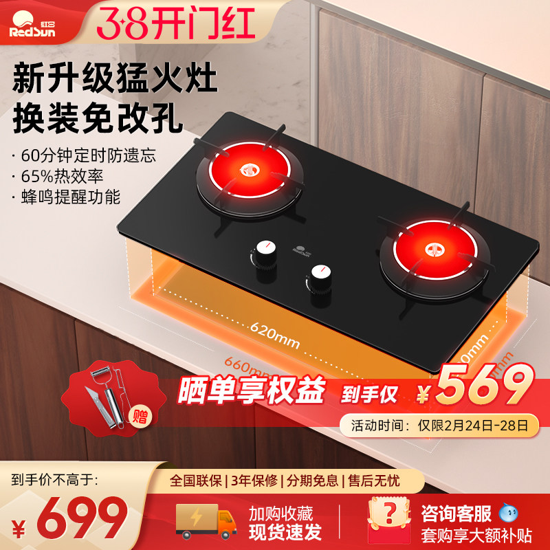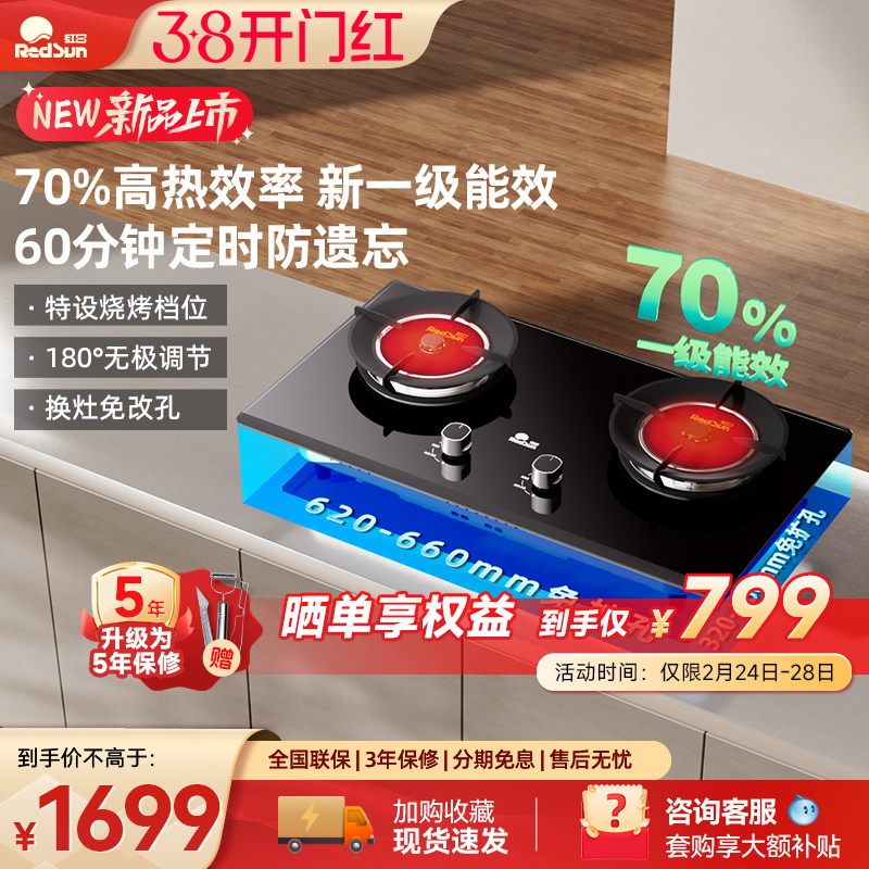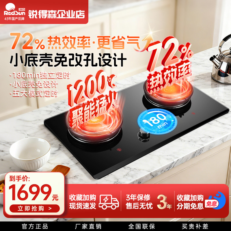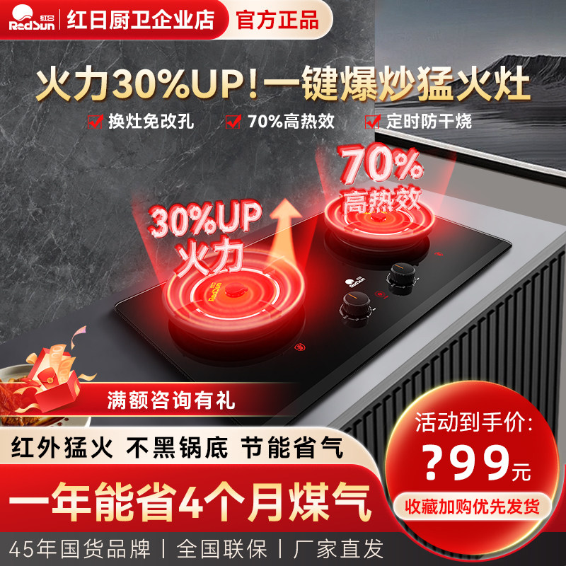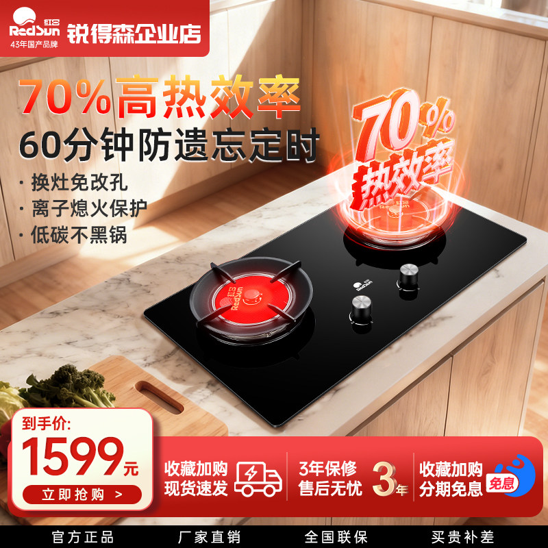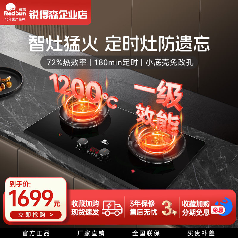 Redsun/红日红外线燃气灶家用双灶72%高热效一级能效猛火灶EM68B
