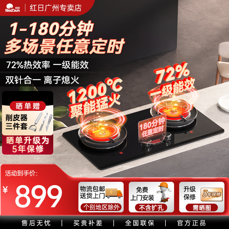 Redsun/红日红外线燃气灶双灶新一级能效猛火灶70%高热效率EX36B